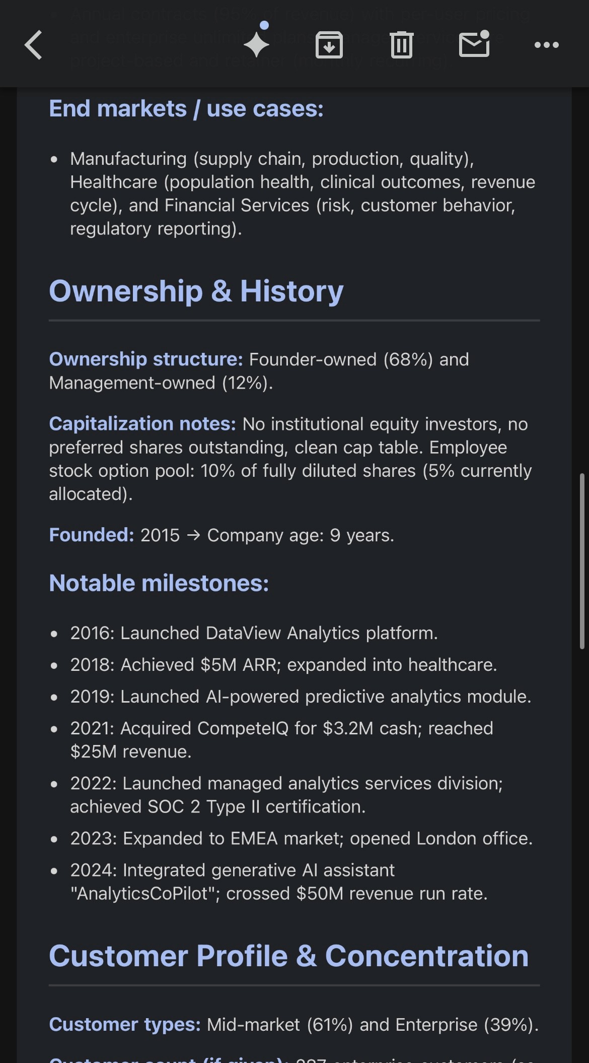 514 Equity Group was wasting hours every week to go through CIMs and data rooms for potential deals. They went through each CIM manually and created a go/no-go investment memo. They were paying $80,000 a year to an analyst to do the above mentioned tasks.